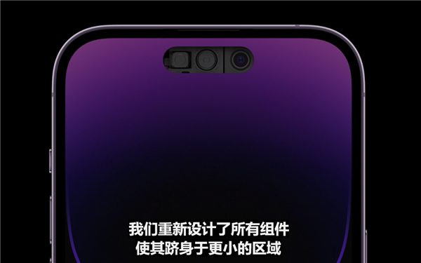 正面也不再是刘海屏,而是长条形药丸形态,苹果将其取名为“灵动岛(Dynamic Island)”,用于3D面容识别的器件除了重排,距离感应器也首次埋到了屏下。