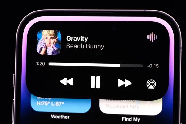 可能是为了减少用户不适,苹果为这块全新的“灵动岛”区域设计了大量交互,包括显示专辑封面、放大成Face ID认证图标、显示包括勿扰模式/消息/音乐卡片/倒计时等在内的诸多通知等。
